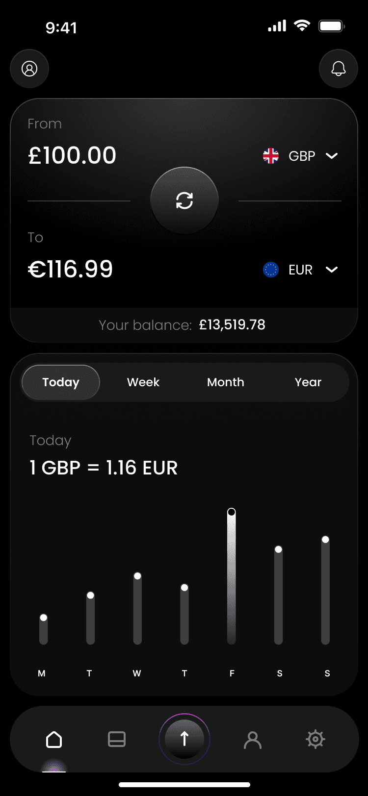 Built-in converter to instantly convert between currencies.
